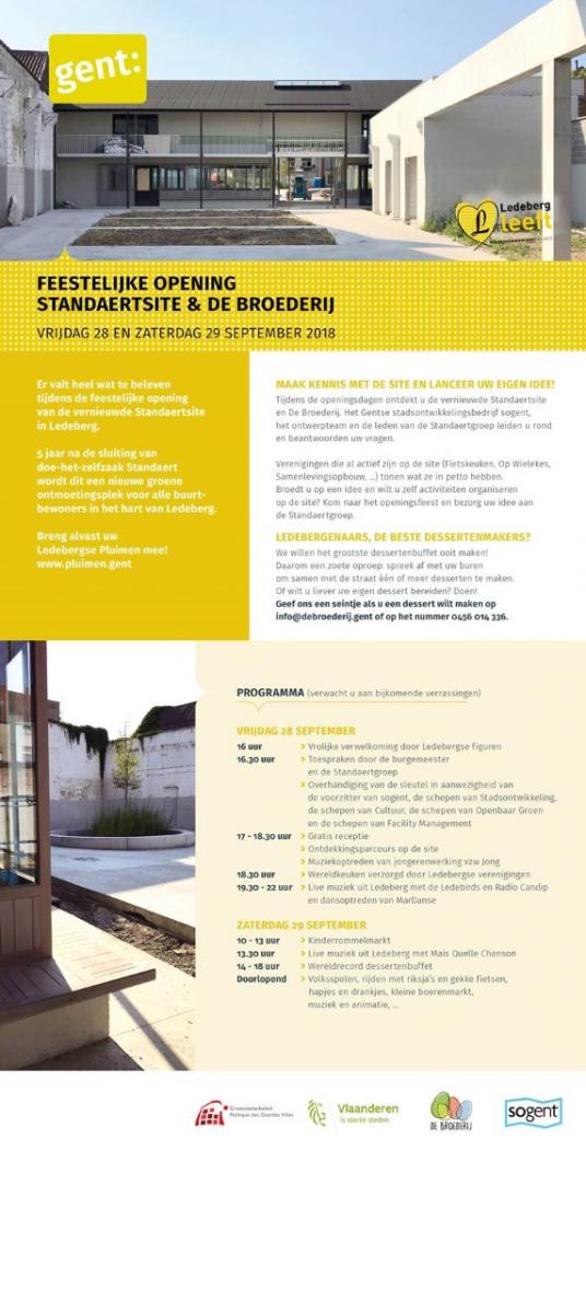 Vijf jaar na de sluiting van doe-het-zelf-zaak Standaert opent in het weekend van 28 en 29 september 2018 op deze locatie een groene ontmoetingsplek voor alle buurtbewoners in het hart van Ledeberg.
